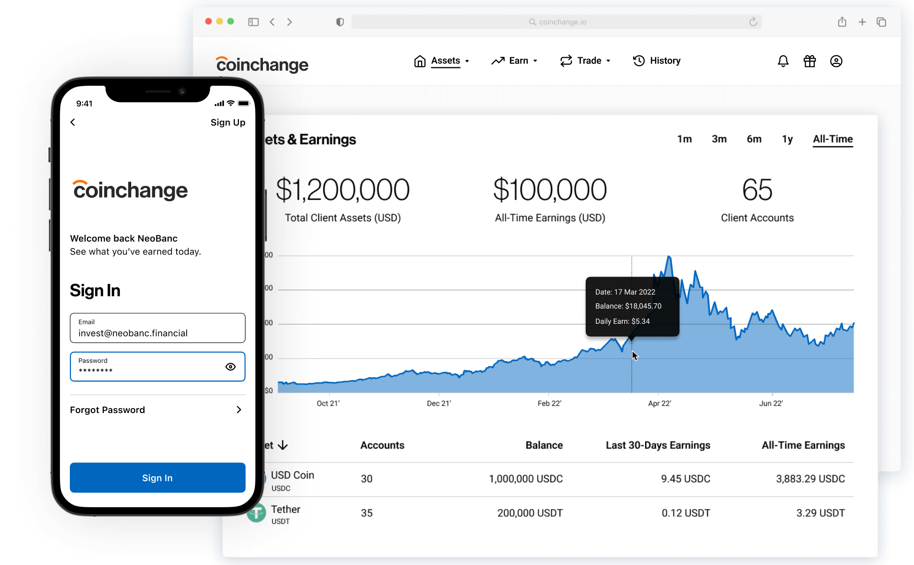 Enable your customers to access high yield DeFi products. With the Coinchange DeFi Yield API, you can let your customers earn higher yield without the need to use complex and time-consuming DeFi protocols and yield strategies.